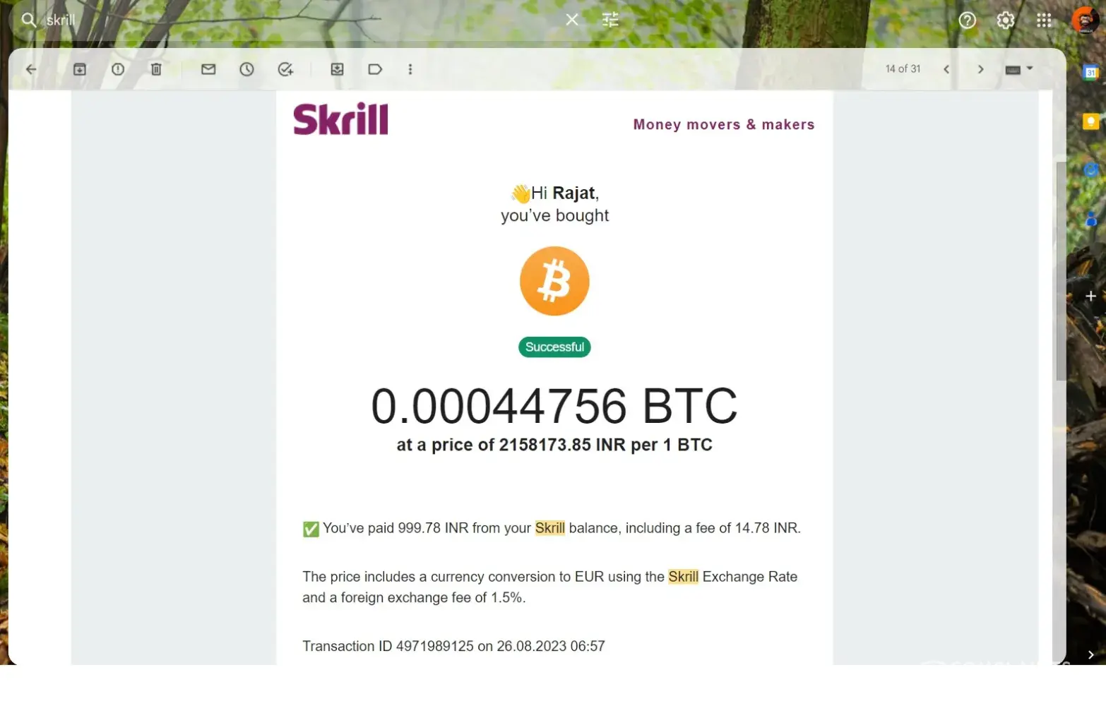 On Tuesday night I found an email from Skrill :