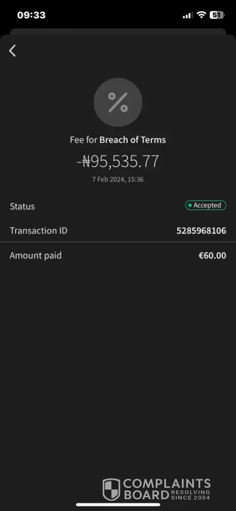 Fast forward to July 2020, and I finally got an email saying my account had been verified. But then, just a few days later, I got another email saying they wanted to end our "business relationship" and that they were going to deduct a ?50 administration fee. They called it a Repair Fee, but let's be real, it was just a way to take my money. They suspended my account for over 9 months, verified it, and then immediately closed it and took all my money. I never even got to use their service once!