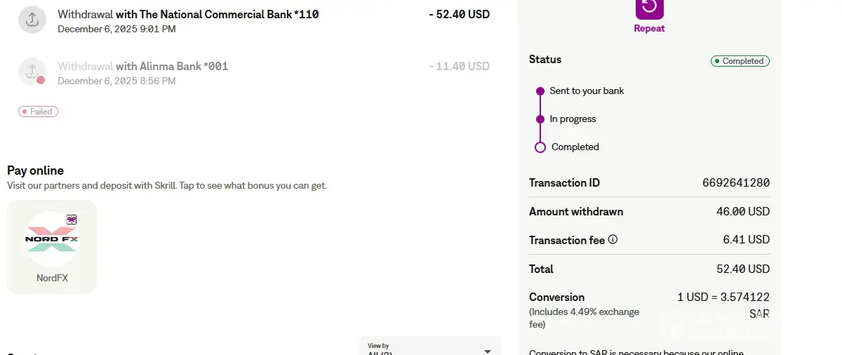 Subject: Formal Complaint – Missing Bank Withdrawal Dear Skrill Complaints Team, This is a formal complaint regarding a bank withdrawal that has not been received. Withdrawal details: • Skrill email:[protected]@hotmail.com • Transaction ID: [protected] • Withdrawal date: 6 December 2025 • Amount: 52 USD • Bank name: Natioanl commercial bank •...