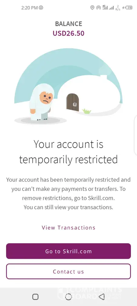 Mine withdraw was done from skrill to mine account, actually last 2 digit account number was misplaced so it's went to another account, on feb 3 bank done reversal to skrill. But skrill was respond still it's not credited, I have uploded with proof with bank statement, later no respond from skrill I really lost my patience. I lost trust on skrill also, I am using skrill from 2018 this was the first time I am facing this issue, I don't know the reason behind that, I hope complaintsboard solve my problem thanks.