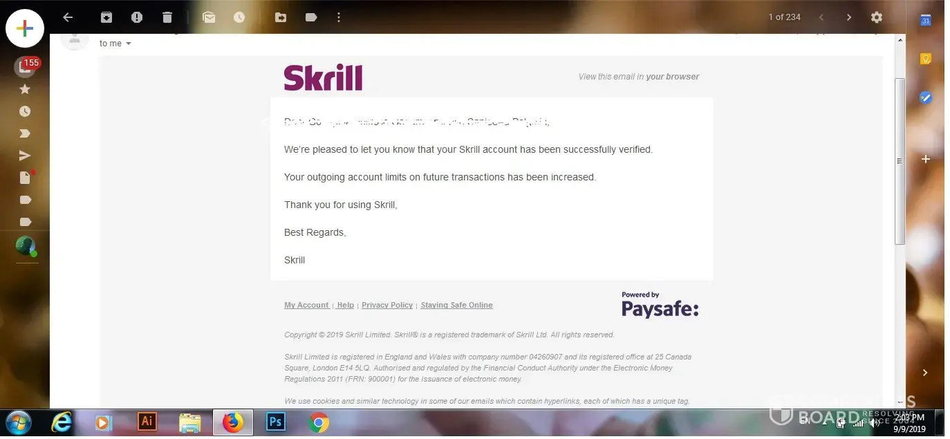 Skrill. First thank you for verify my account. But, there is something wrong with my account. Received email notify money transaction has been increased.