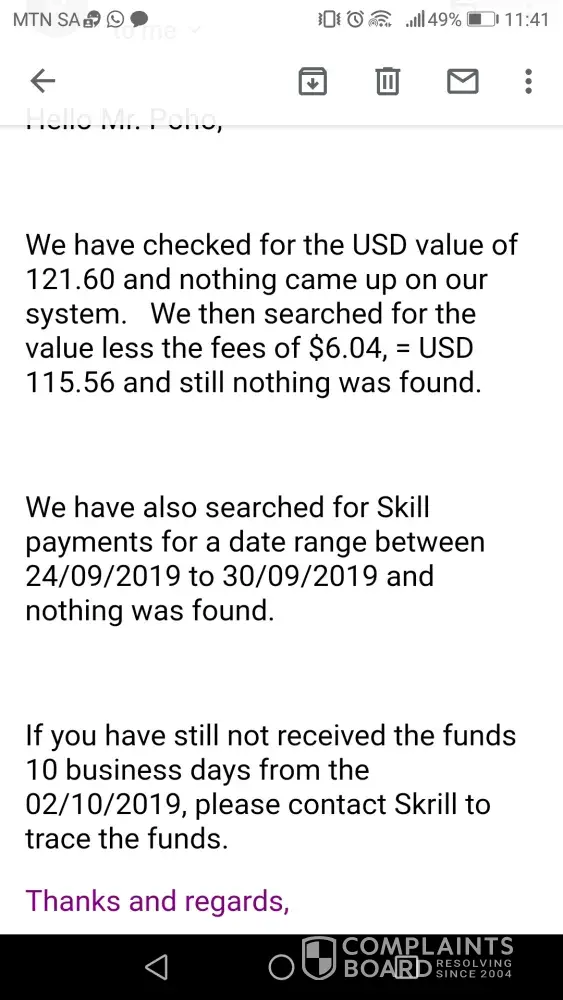 I even emailed the report to the skrill and since they take my bank statement skrill but I haven't received anything from them.