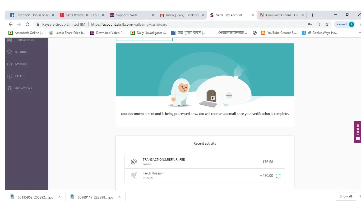 dear sir, i have funded skrill by 470 us dollar 10 days ago and for verfication purposes i have attached all the documents attached .but they do not verify me and wanted me to attach documents everyday.i have attached documents they recommend but 2 days ago they sent me a massage saying permanently close my account but when i sign in i saw they have deducted 156 us dollar from my account saying repairing charge.it is very rude for me.becasuse this is my hard earned money.i deposited for trading in forex.i have attached a picture of deduction of account for your kind evaluation below.thanks