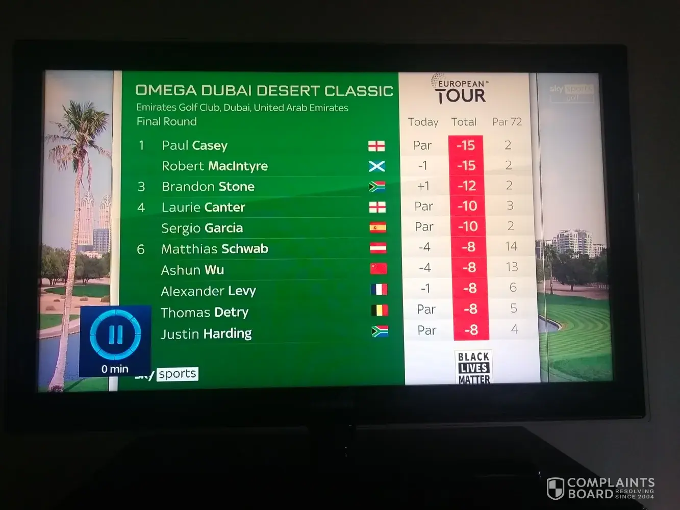 Why are you still showing support for BLM (Black Lives Matter) on the Sky golf leader board for both the PGA and European tours?