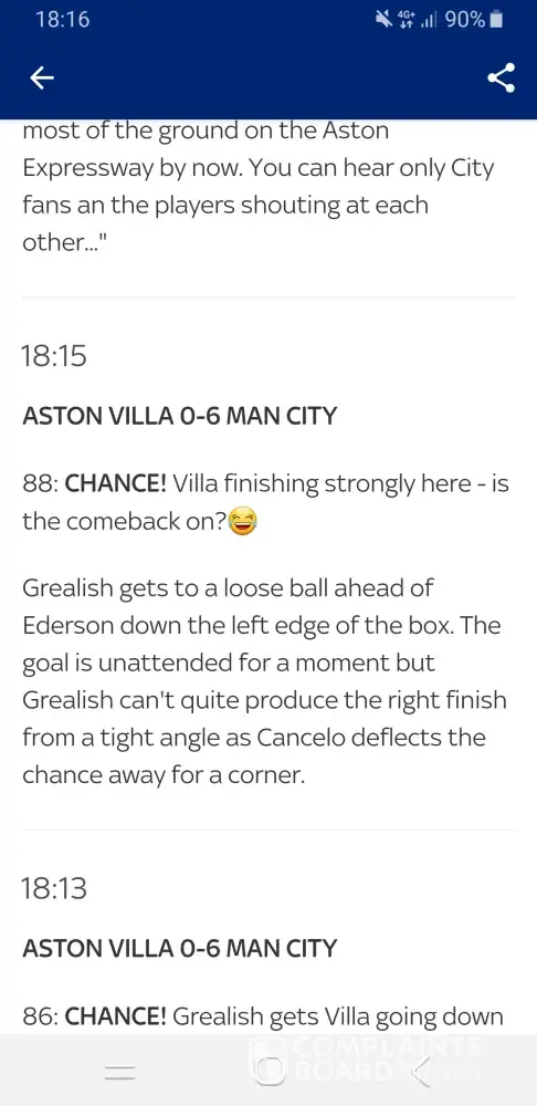 I use your app for up to date news and scores... Having keeping an eye on the score between Aston Villa vs Man Coty on 12th Jan 2020 I was disgusted to see this comment from your person commentating/writing about the game..