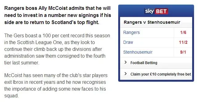 The new Rangers club were formed in 2012 and applied to join Scottish Football at the bottom tier. It is important that SKY Sports and other media outlets tell the truth about the events that led to the liquidation of Rangers FC and not be part of the propaganda scam to re-write history with false information.