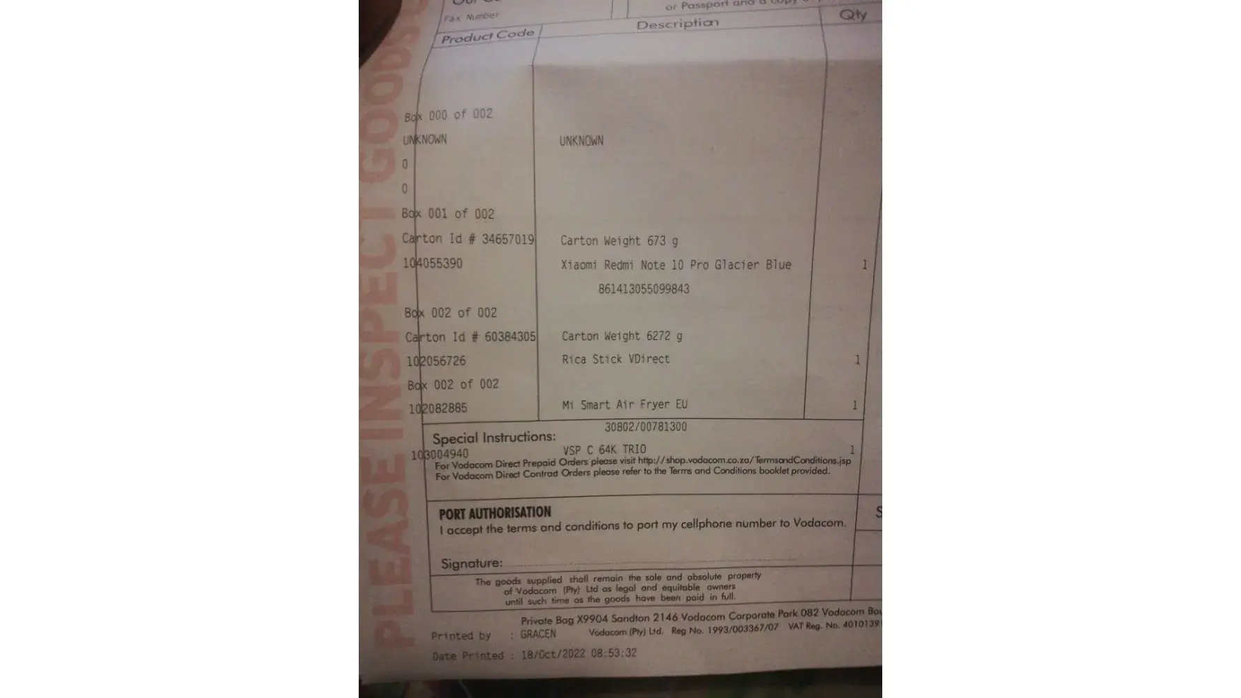 I ordered something from vodacom and it was sent with skynet there were items missing from my order and when I tried reporting there were no way of contacting them whenever I tried calling it always said line busy