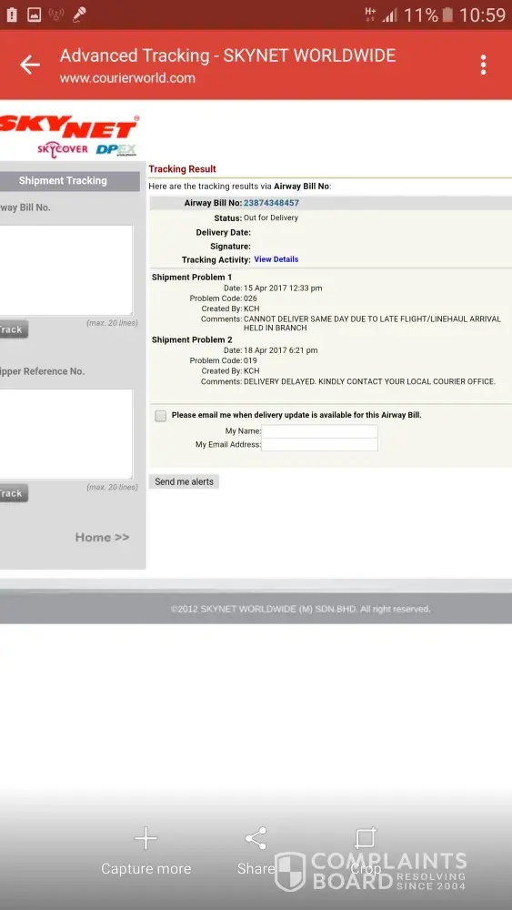 Skynet Worldwide Express Complaints Page 19 of 22