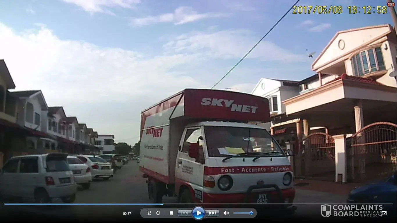 Hi, I would like to complain the driver who drives the Skynet courier service lorry with number plate WNY 6850. He drove in Jalan Sungai Keramat 13, Taman Klang Utama, 42100 Klang on 8 May around 6:10pm. The driver did not give way to my vehicle which he supposed to do as I was stuck in the middle of road and could not proceed forward, but he just drove in front of me and forced me to turn my car to hit the car which parked at the roadside and the Skynet lorry driver just ran away. I really hope for your kind help, thank you.