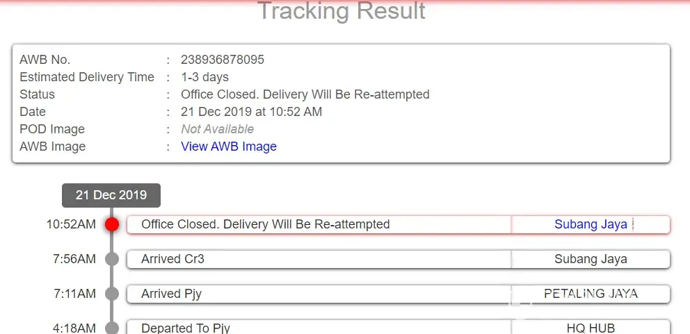 Sender send out the parcel on 20th Dec 2019 and the parcel arrived skynet outlet nearby my location on the 21st Dec 2019 and there is no more delivery stautus update already. When I called to skynet customer service on 26th Dec 2019 and their reason is lack of manpower to deliver the parcel so the parcel is still stuck at the outlet. I went to the outlet...