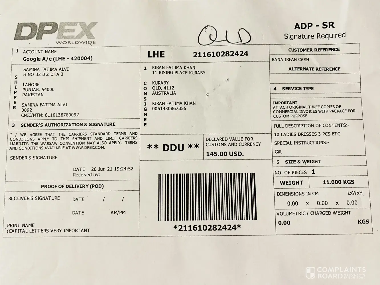 I'm complaining regarding order number [protected]. I have received today in Brisbane, QLD Australia.