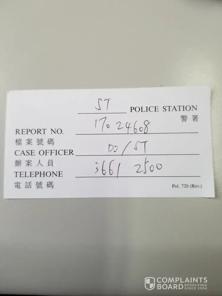 I already reported the case to Hong Kong Police last night. Report no. [protected]