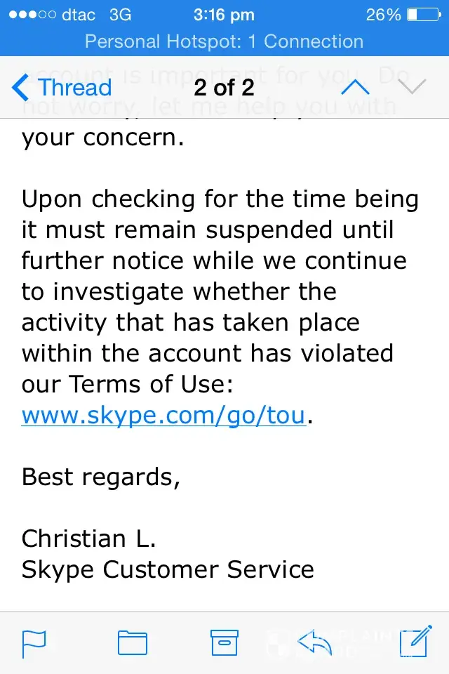 Anyway, I'm not going to get my money back and therefore I would like to make sure that consumers do not fall into the same trap. Skype is a scam and don't deserve your business. Take it elsewhere there's lots of other options out there. I am making sure I broadcast this news to everyone on the internet. It will be $10 worth spending.