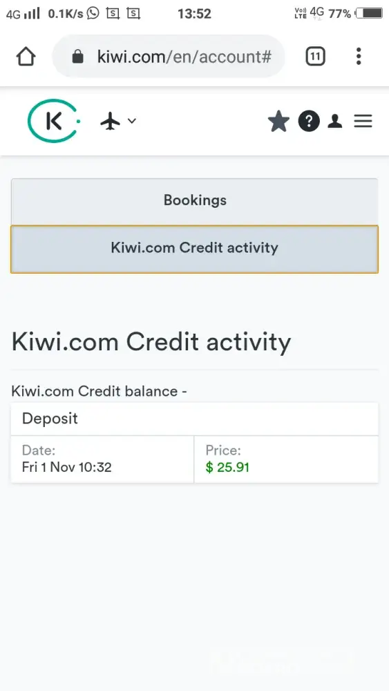 3776 62XXXX X2221 from Kiwi.com S.R.O. Brno.