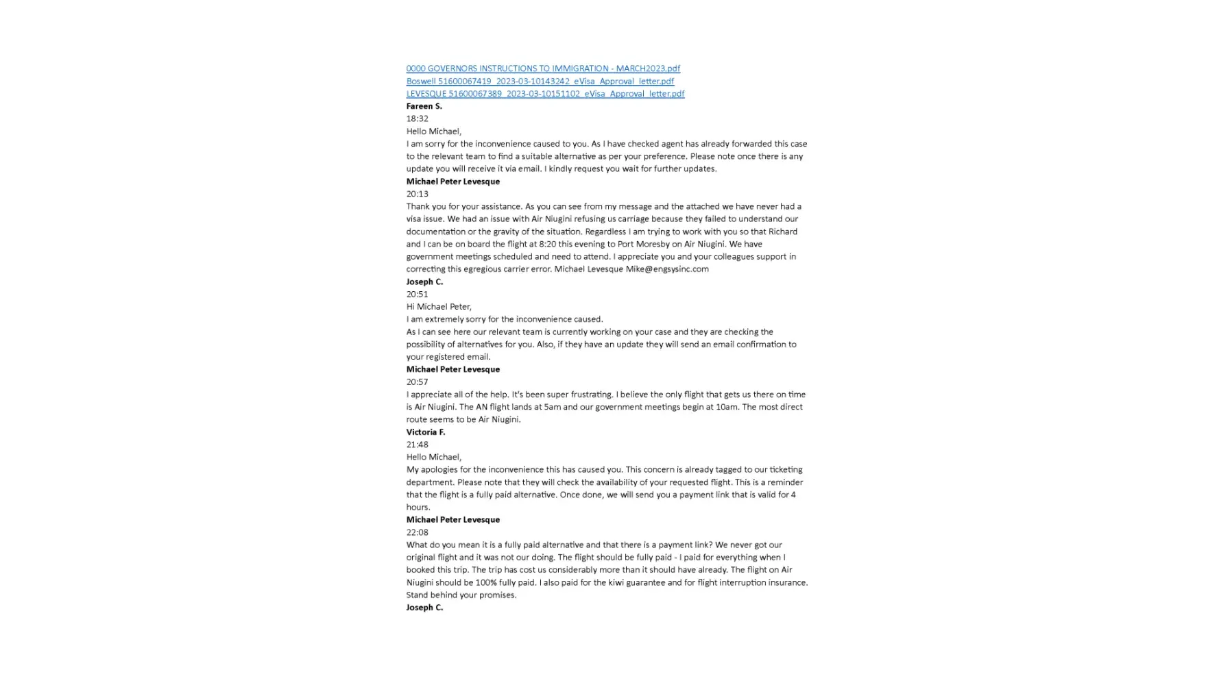 In Singapore we ran into a problem. Air Niugini would not allow us to board. The airline made the decision - not Immigration. We contacted kiwi and they refused to change the flight even after we bought the kiwi guarantee, the travel interruption insurance, etc. Kiwi agents ultimately cancelled our flights when I asked for a refund ...