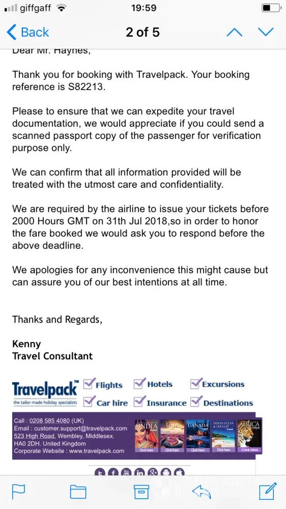 After booking this they refused to book the ticket unless I sent them I scanned photo of my passport which seems unusual.