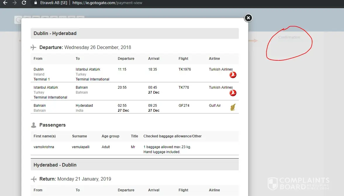 I have attached screenshot of final page before the payment. It was completely your system fault.