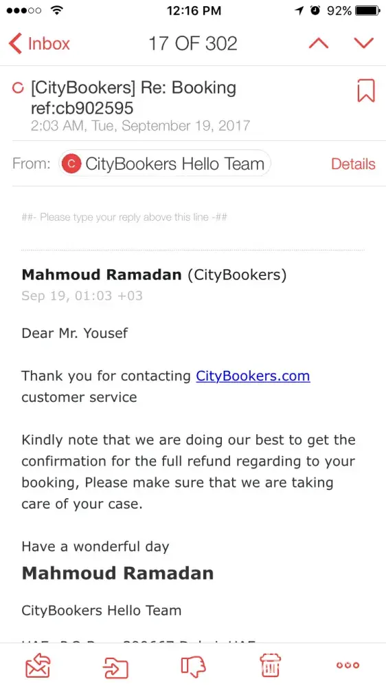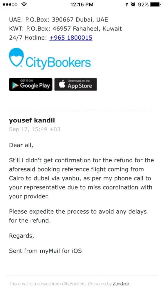 I booked ticket through sky scanner and then diverted to city bookers to book 4 tickets from cairo city to dubai via yanbou airport, i was surprised when the check in desk in cairo airport told us thet you can not ride the airplane, and told us to go and book another flight .