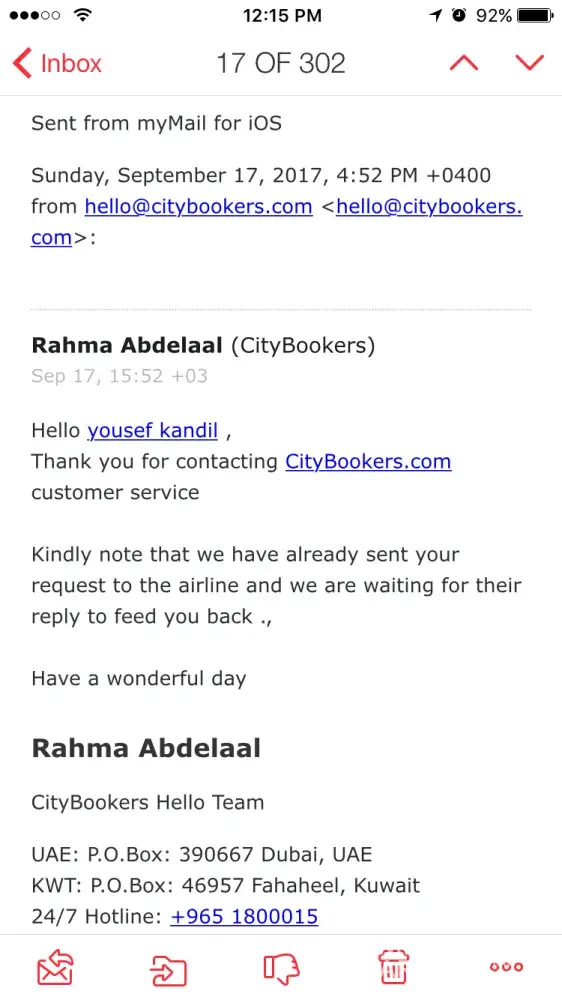 The issues had started since the very beginning when they spent days to confirm my flight. I was instructed to get in touch directly with the companies to confirm the purchase and also the trip. These things are supposed to be sorted by the company you have purchased the products from, not by its customers. After coming back home, I requested a copy of the invoice with my employer details for reimbursement purposes.