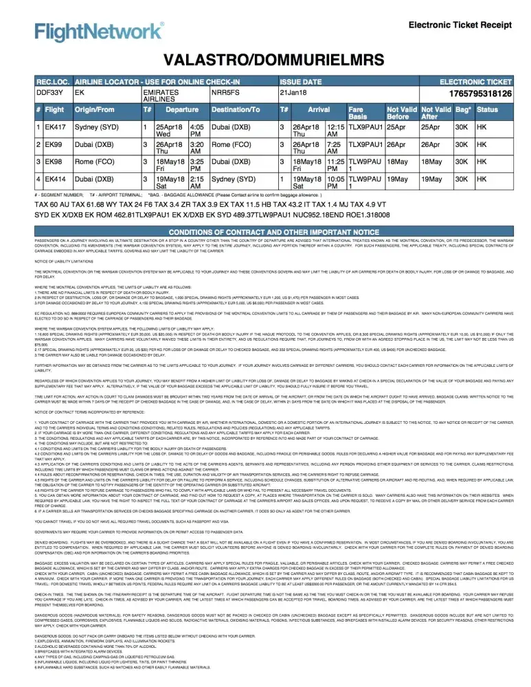 qatar airlines tickets which was purchased through travel trolley