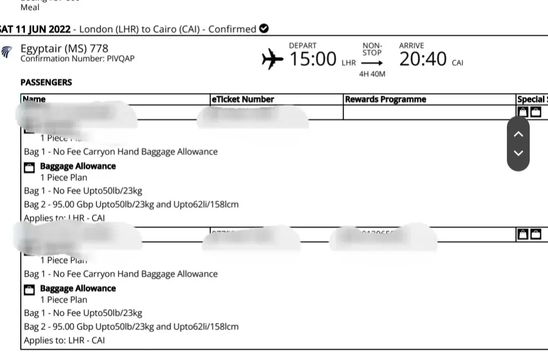 Desired outcome: Recieve additional baggage allowance as advertised.