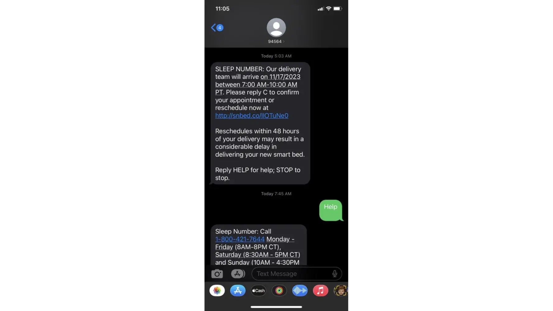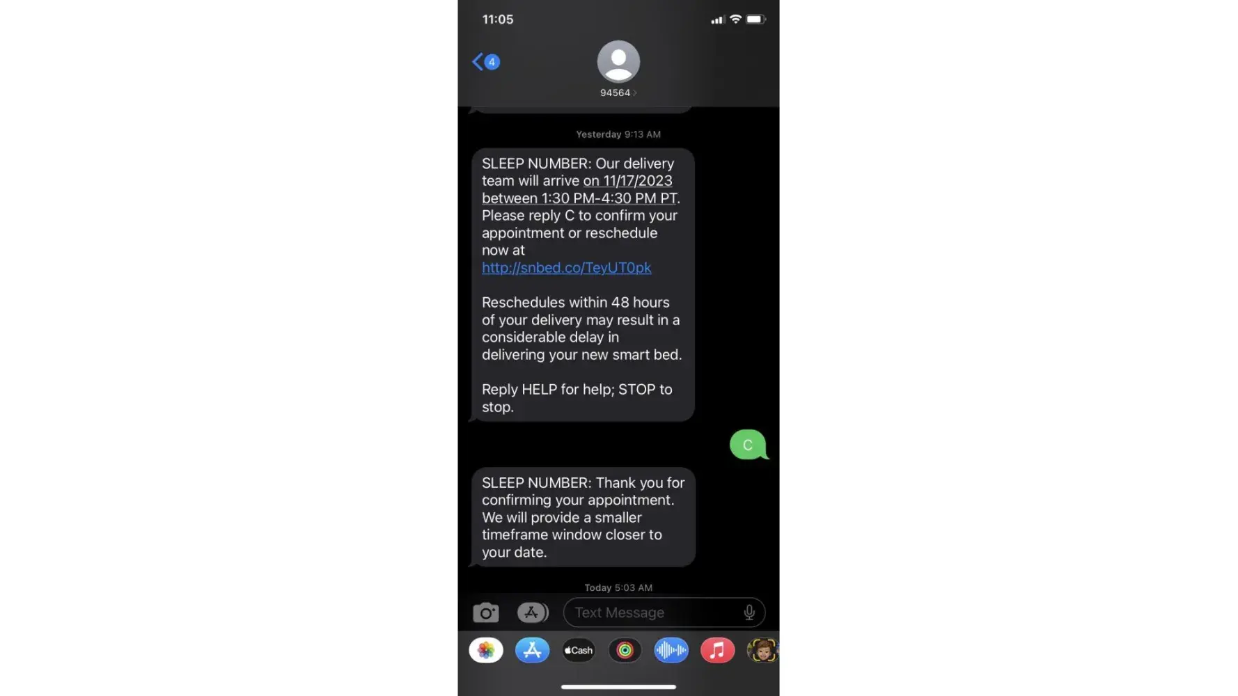 Instead, I will be sending Sleep Number a bill for my pay for missed working hours as I wait for my bed to be delivered during the wrong delivery frame that was requested, and if needed I will take this to small claims court for reimbursement. I bought a very expensive bed, only to be told no change in delivery. Sleep Number is not willing to work with me and I find that a very disturbing fact.