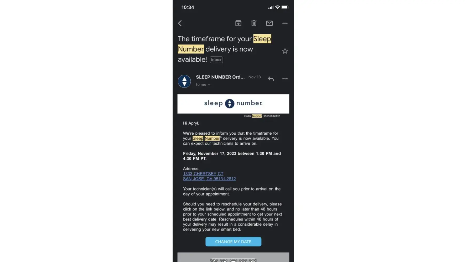 Sleep Number Order # [protected] the whole set up process from sales to delivery! Smart control system, mattress/1b