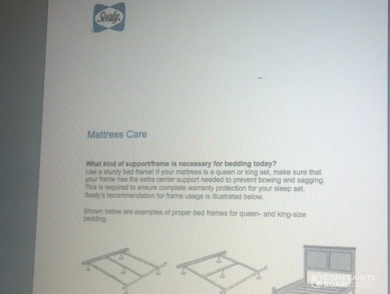 I purchased a Sealy King Size Mattress in June of 2009 (4 years). I called Sleepy's to complain about sagging in the mattress. As we all know, they then send out the "Professional Mattress Inspector", who took 4 weeks to get to my house. He measured the sagging, took a few pictures (my mattress looks brand new), and was gone in 5 minutes. He told me I would get a phone call from Sleepy's with the results. I said to him "what results do I need", I have a 10 year Warranty... His reply, which was epic " IT'S A WARRANTY NOT A GUARANTEE". From that moment I knew the game was on, so I loaded my ammunition, as I went online and found 14, 127 reviews & complaints about Sleepy's shady customer service... Low and behold, I received the call a few days later. I am sorry, but Sleepy's cannot honor your warranty as the report states improper support framing. Sleepy's will now find out the true definition of resilience. I contacted Sealy which is the company that sold Sleepy's my Mattress. I have attached a document from Sealy website that shows Correct king size framing... in the middle Image it shows one support will suffice... My frame has two supports, which I would consider more than adequate. I have posted this complaint with, BBB, Consumer Affairs, [redacted], Pissed Consumer, The Squeaky Wheel, and I contacted Arnold Diaz from Fox 5, and Help me Howard from Pix 11. My Pissed Consumer Complaint got a reply (which BTW has this heading, "SLEEPY'S VOIDS WARRANTY W/BOGUS IMPROPER SUPPORT CLAIM")...from a woman who is Sleepy's customer relations rep & she contacted me, and wrote this amusing little piece... " We thank you for taking the time to express your concerns. We welcome the opportunity to speak with you. Please email me at csable@mattress.com to include your invoice # and/or customer code along with the best contact # to reach you. We look forward to working with you on resolving the complaint."