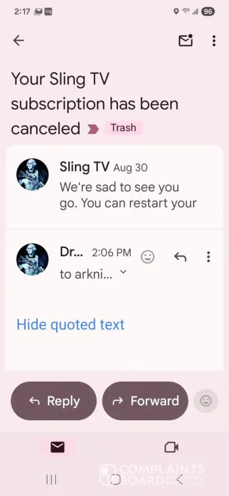 I canceled Sling the same day I signed up. Email from Sling confirmed it. They still want to charge me $22 a month in the future. I had 1 choice. Cancel my card.