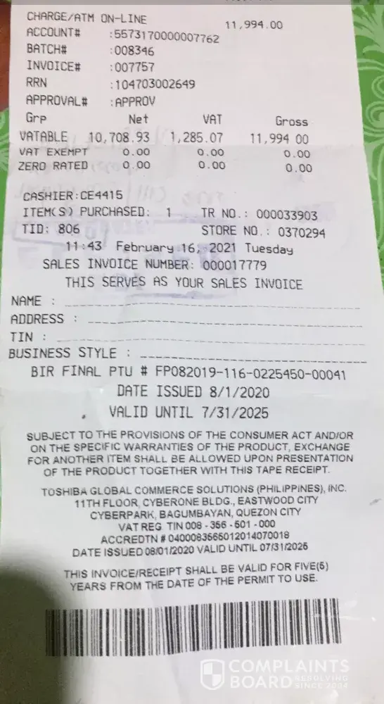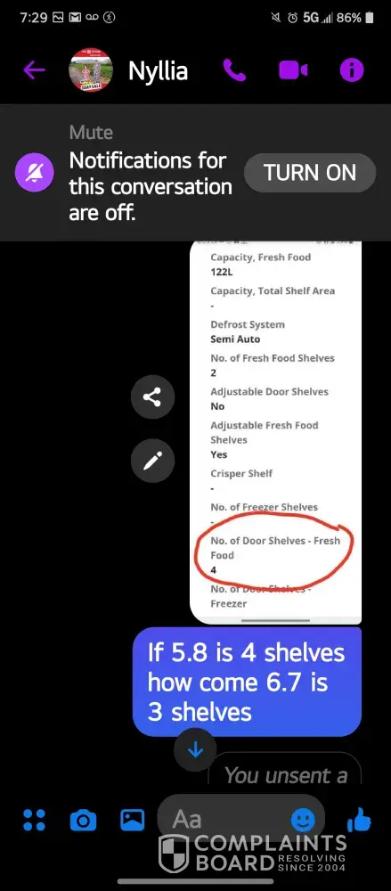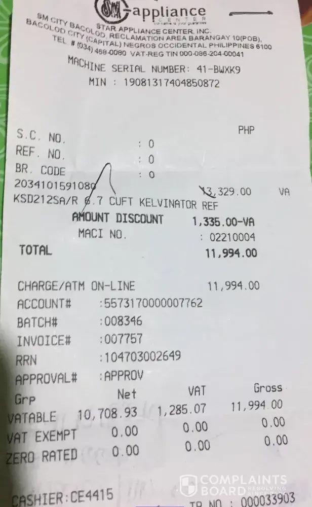 Feb 16, I requested a friend to pick up my order thru the help of a good supervisor in Dept Store. Associate on duty at SM Appliance failed to send photo to see the interior of the item nor discuss in the demo inclusions and exclusions of the accessories of the item. Door shelves should be 4 but only 3 were in the box. They did not disclosed this. And they did not inform that item is not returnable. They only forwarded the photo of a display item the day I complained. Had I known that day about the door shelves and the non-returnable policy, I would not even get and change a different item to my like. Now, it cost me 1500 pesos for the transportation fee to deliver my item which as not returnable. This is really very disappointing esp in this time that every penny shouldn't be wasted but because they failed to do their job customer suffered. Hoping and praying for a fair resolution. thank you!