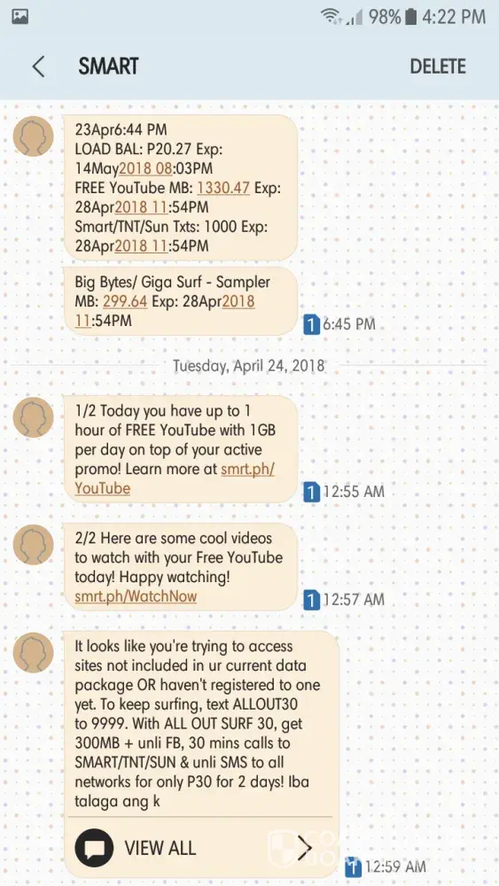 How come that I register giga70 with 1GB mobile data with 300mb youtube and 1000 text to all network. That cant be used to open other apps that used data. Then a minutes later u text me I have 10mb less wow smart! U scam all people with ur promo then when I check the balance I have a 1329.89mb why I cant used all of that even in facebook. Ur signal gets poor when I open some apps. Its so useless that I cant use it. I spend a money for nothing. Ur scammer.