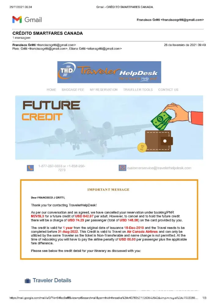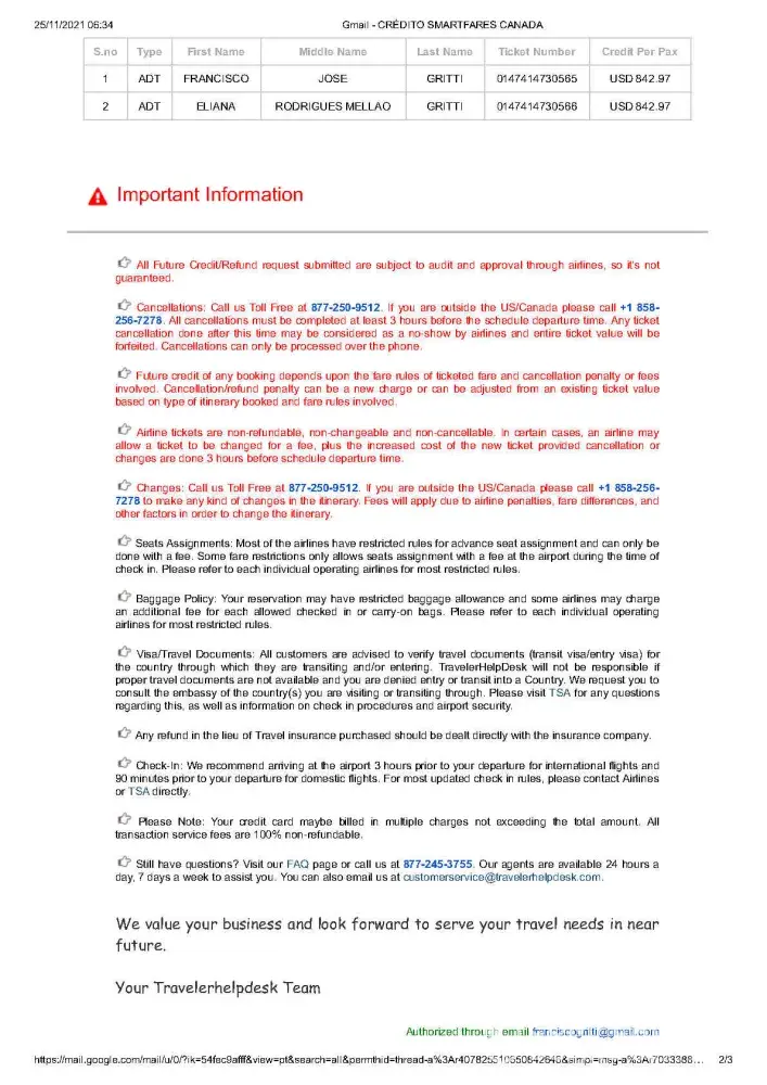 My concern is about losing the money I've paid more than US 1, 400 because as Smartfares information I have a timeline to use this money.