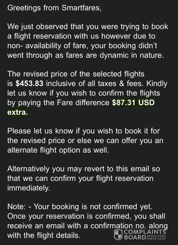 Fraud reservation, Smartfares.com stole my money.