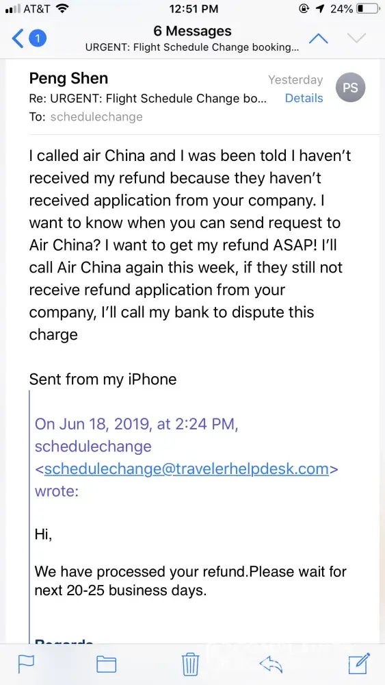 they said they will not refund the money for me.