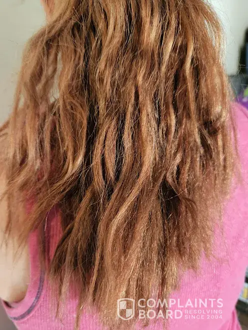 It's also extremely uneven, especially in the back. One side of the back of my hair has a chunk missing the other is long and then theres a small piece in the middle thats longer than both sides.
