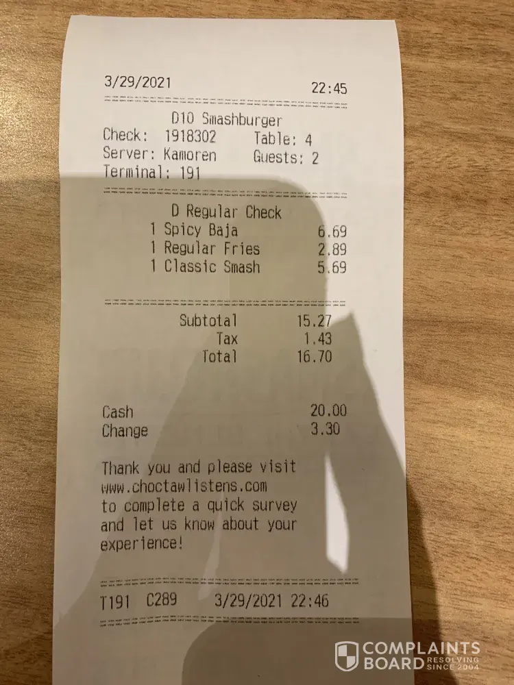 I am tired of being shuffled back and forth. I truly believe it is the Responsibility of Smashburger.