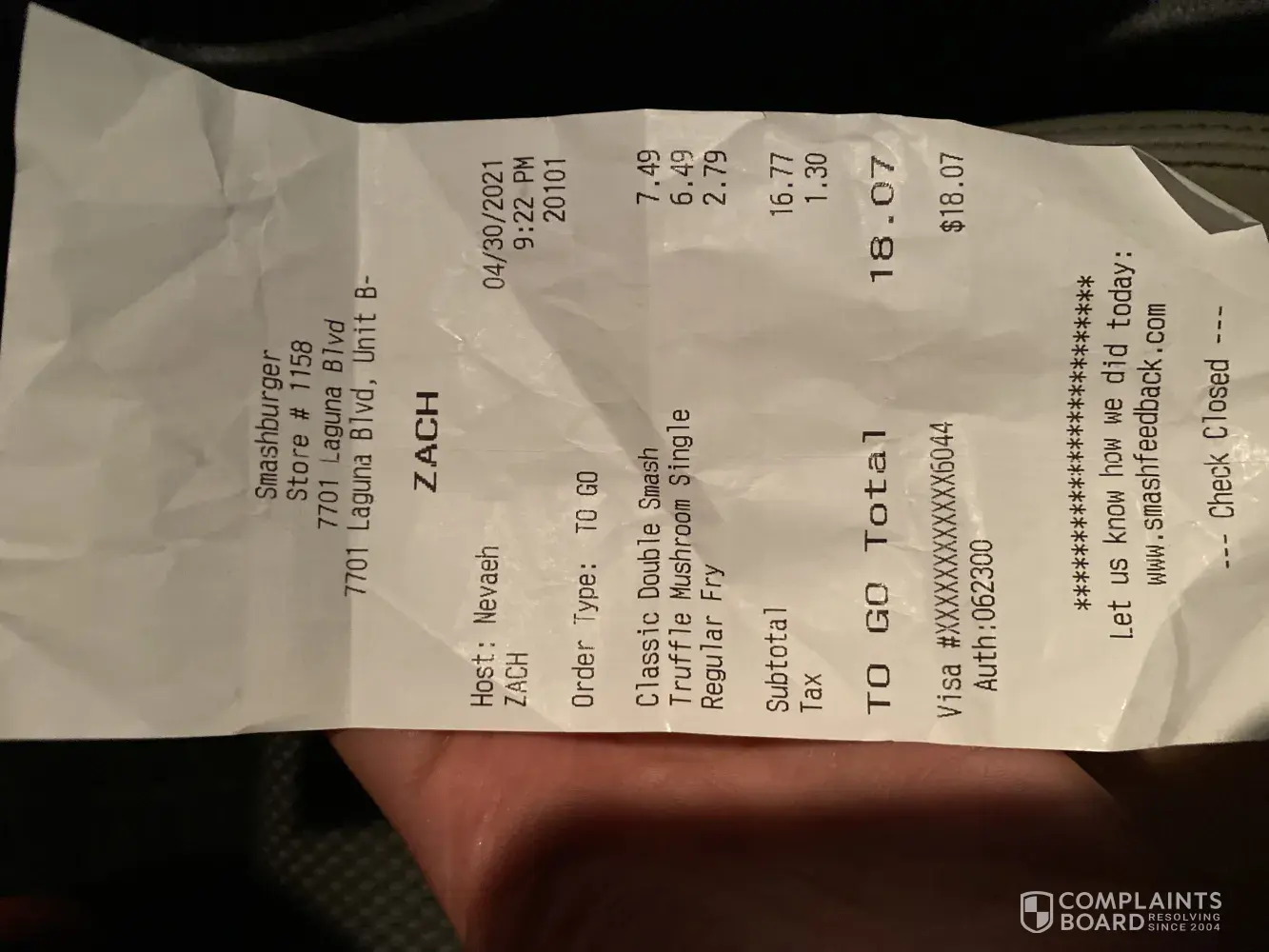I called Uber Eats and they instructed me to call Smashburger because they prepared the food.