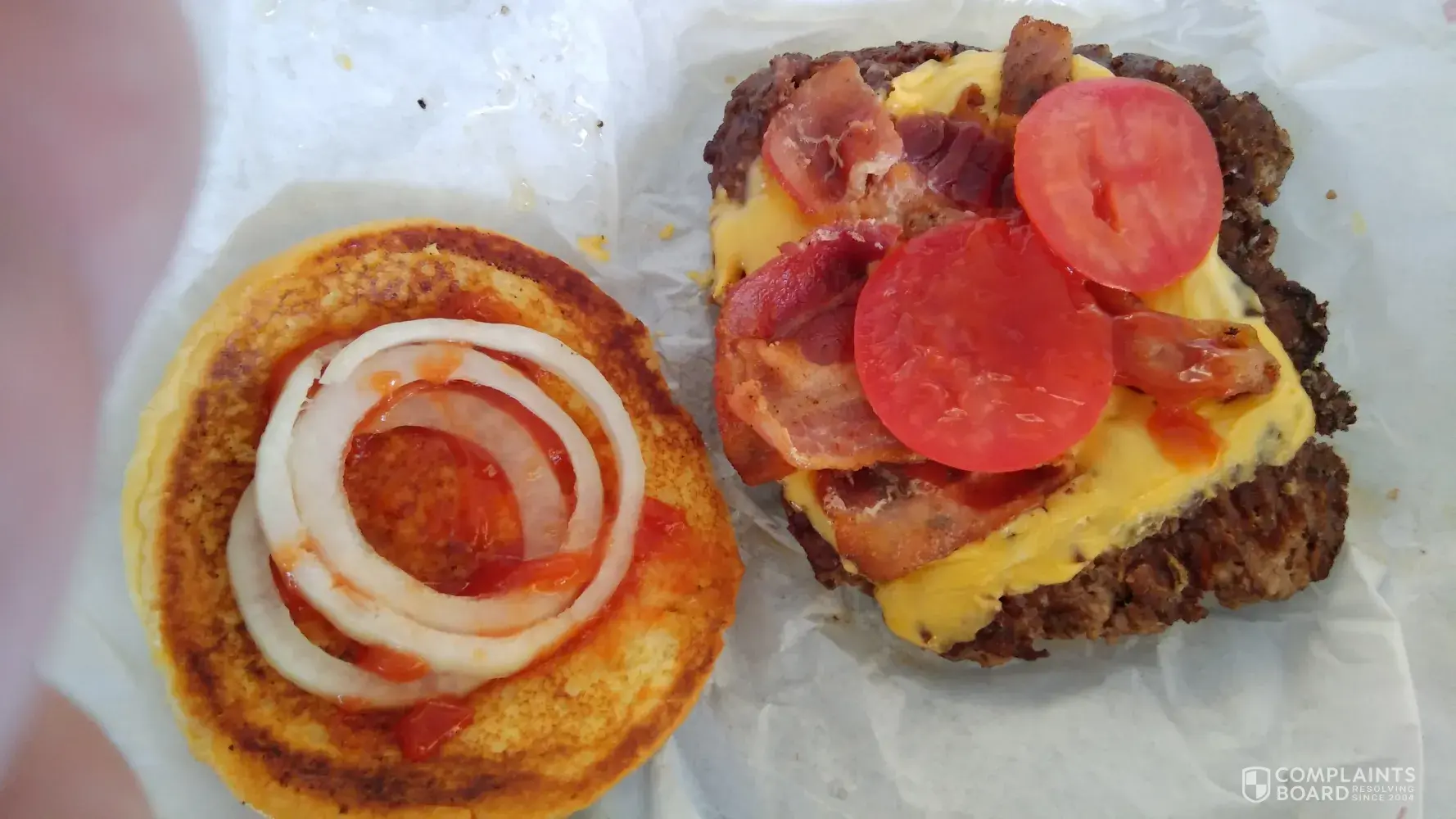 burger. extra charge for tomato