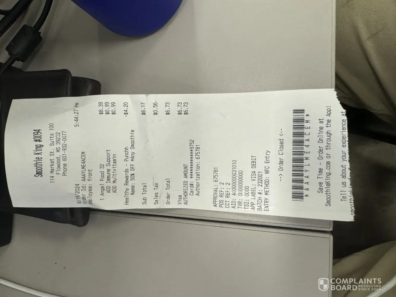 Smoothie King REFUNDS WAS NEVER GIVEN BACK
