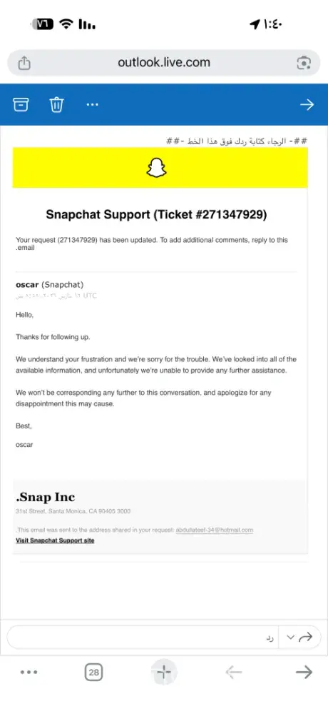 I am filing this complaint against Snapchat because of a serious account issue that has still not been resolved despite repeated contact, full explanations, screenshots, and multiple follow-ups. I have been trying to change the email address connected to my Snapchat account, but the system keeps blocking me with messages such as "too many attempts" or...