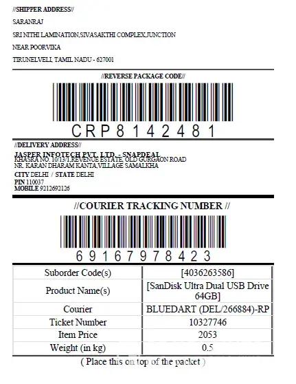 Courier comapny collected product on - 19.01.2015 after continuous follow up with Bluedart and Snapdeal both (I delivered it at courier office personally)