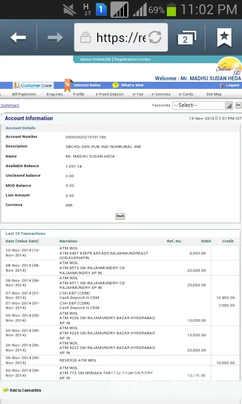 ON 15TH NOVEMBER I GOT ANY UTRN NO FROM KOTAK MAHINDRA BANK WHEN I ADKED MY BANK HE TOLD THAT UTRN NO KKBKH14316259864 NOT DONE TO MY ACCIUNT NUMBER.