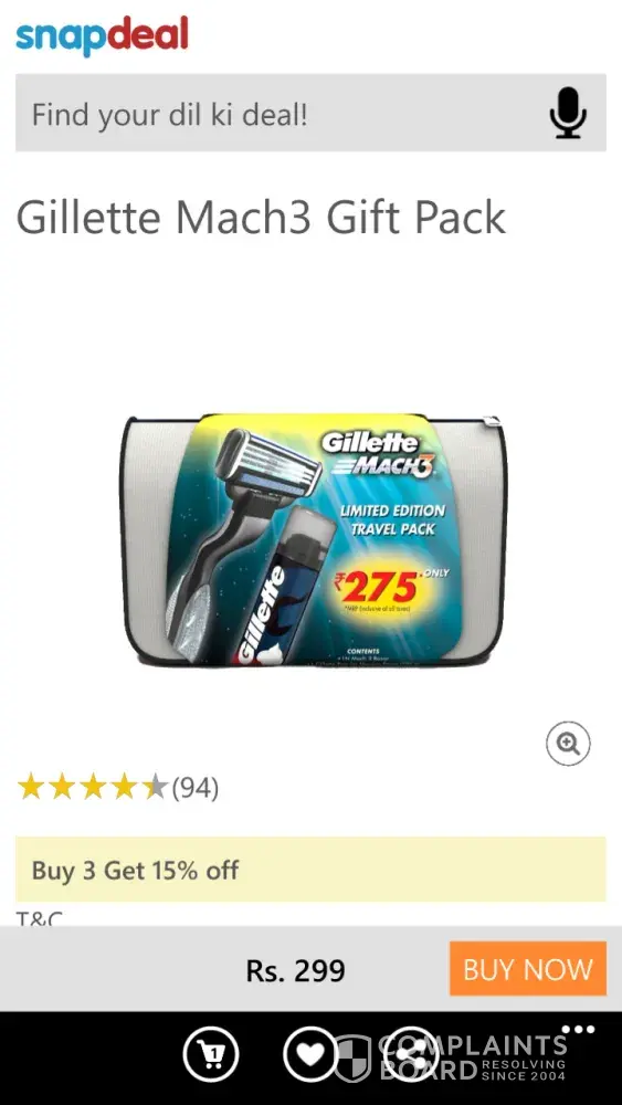 I hv purchased a Gillette mach3 gift pack from Snapdeal. Its Mrp s 275 but they r selling it for 299/-. They r biggest frauds in India.