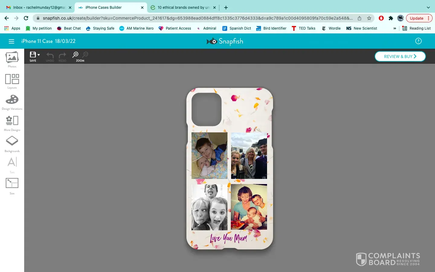 I purchased a personalised phone case as a Mothers' Day gift. I spent a while perfecting the layout and making sure all of the photos and words fit nicely onto the template (please see attached).