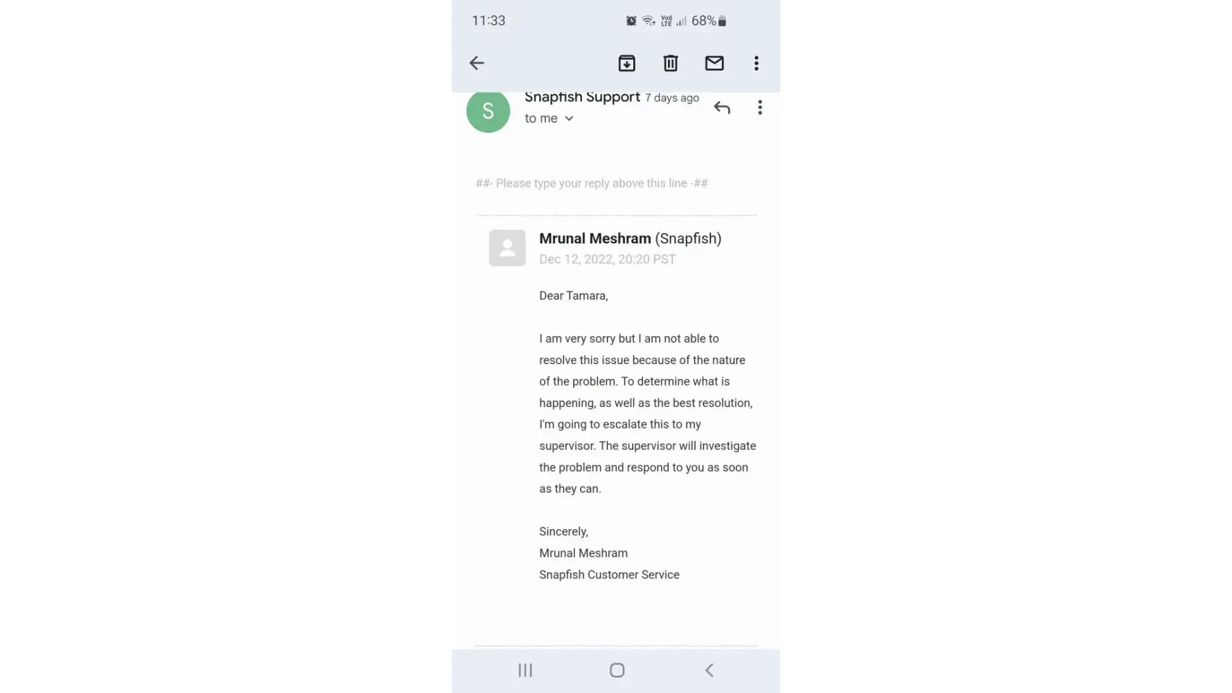 From 20th Dec 2022 I reached out to Snap Fish customer service (online) 7 times as each time the online agent advised that their supervisor would email me with hours. When this did not occur I would engage with them again and kept getting the same response.