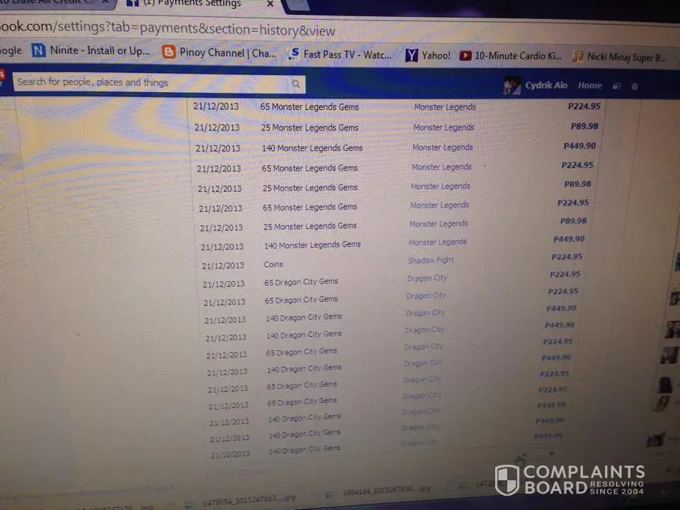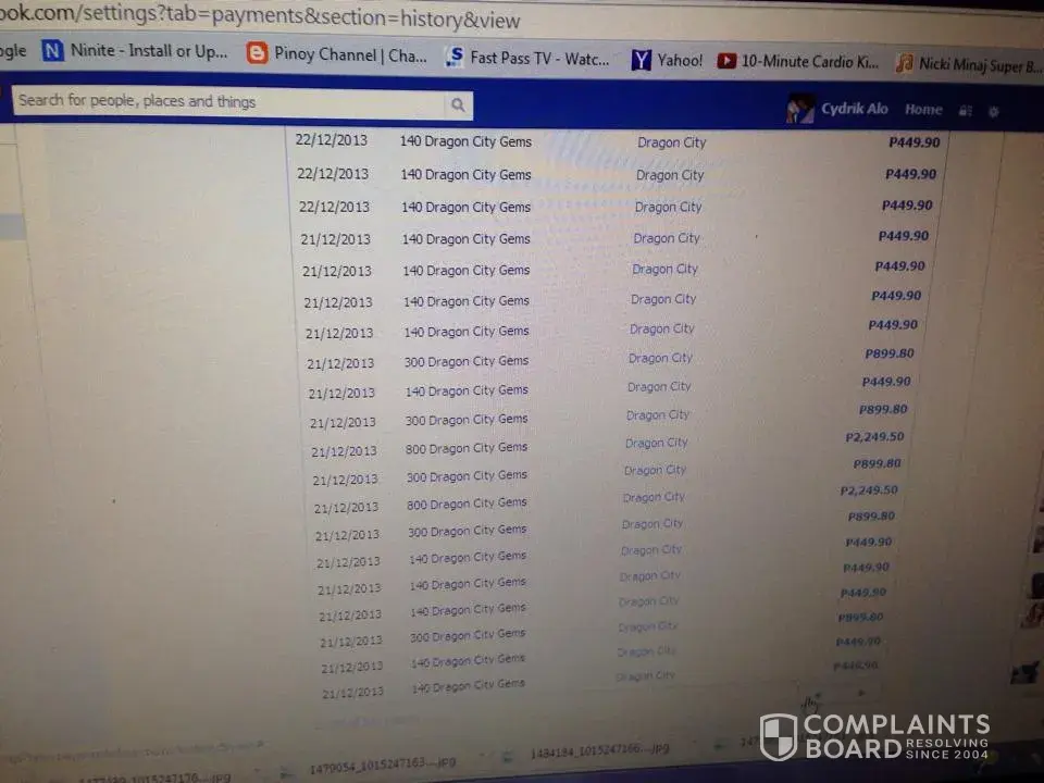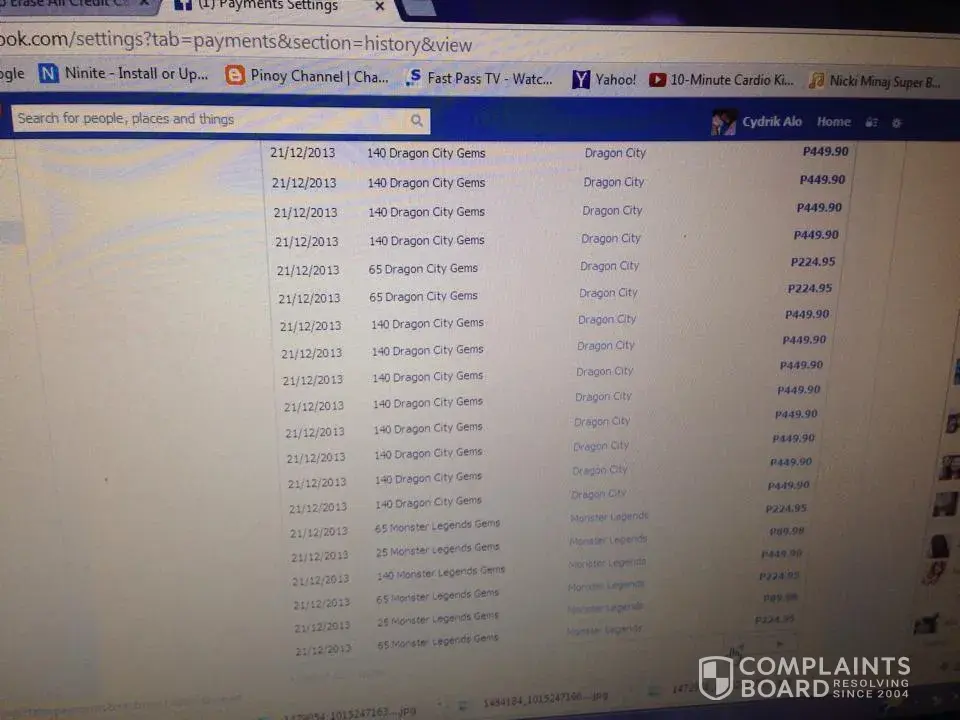 my 8 year old son has been playing dragon city for a long time. there was no in app purchases made before. then on 30th of november he asked me if i can buy him some dragon city gems which i agreed using my credit card for that one time only and it costs me more or less 500 philippines peso my son is in the philippines that's roughly $10 more or less. i entered my credit card credentials i did the purchase myself. without my knowledge my 8 year old son without my knowledge has been purchasing dragon city gems ever since without telling me, which i think is fraudulent in the part of the administrator of this game they should have a code or need to enter the a pin for my credit card before they approve the purchase. i almost fainted when i received my bank statement when i saw i need to pay more or less $2000. $2000 to pay for a game is downright outrageous i feel i've been robbed. i hope you will look at my complaint and advice me what are the steps i can do so that they will refund my money back. i already sent a complaint to facebook but they didnot email me back. here's my email alo.[protected]@yahoo.com if you can take notice at my case please send me an email on the steps that i could take so that i can have my hard earned money back. thank you...
