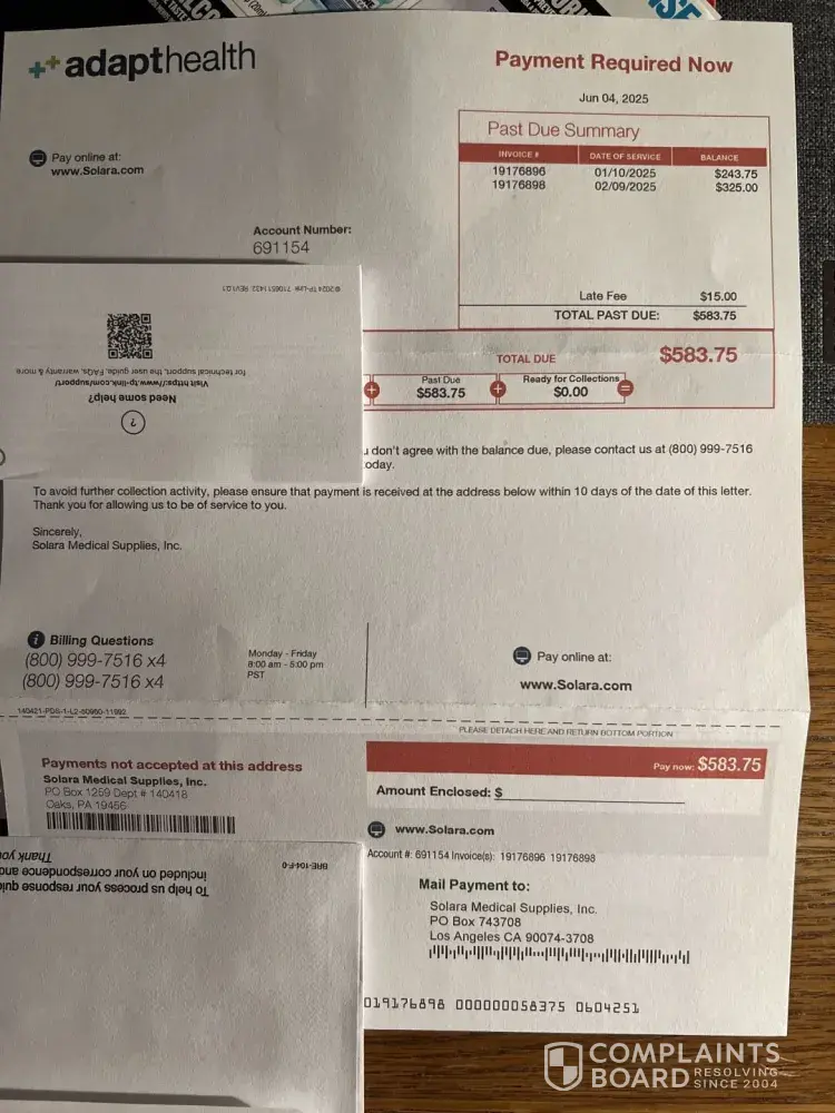 Read full complaintSolara and Diabetic Supply is owned by Adapt Health and they are terrible