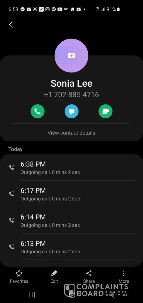 Yes, that is the same number I have. She scam me out of $3,000. I am in the process of sueing her. She may the mistake by giving me her address. I went to her house to give her the money. You can reach to me, if you like. fernnelia@att.net.