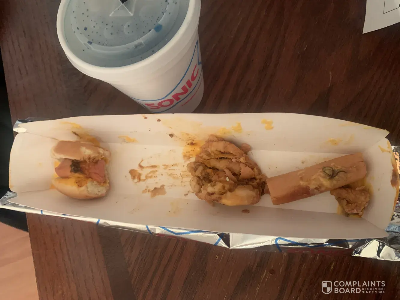 Took my daughter to the sonic on Highway 160 a day after Christmas and we had hair a clump of hair in our food I tried contacting the manager he told me to contact you guys I've tried twice to have you guys get back in touch with me and it has not happened so my next phone call do you guys will be from a lawyer. The pictures that I have sent shows you that we had consumed most of the foot-long hotdog when I found the hair in my food and I do not know what my 13-year-old daughter may have not seen but consumed