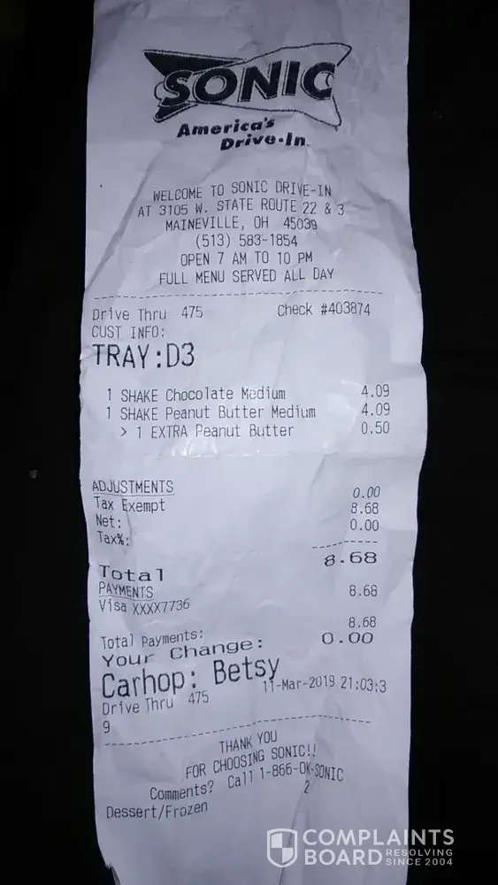 I ordered a caramel sundae as usual paid EXTRA for Oreos and only got a scoop of crumbs. I went in a nice way about it and the manager made it as if she could do nothing about it. Didn't feel like the person was considerate at all. All the person said was I'm sorry & to me it would've been satisfying and great customer service if something was done about it but sadly it wasn't. This by far the worst service I've had at this Sonic!